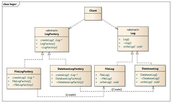 工厂方法模式是简单工厂模式的进一步抽象,核心工厂类负责定义公共接口,创建产品类实例则由各个工厂子类具体实现,这样可以在不改变核心工厂类的情况下,通过定义新的工厂子类,创建新的产品。例如日志记录器: